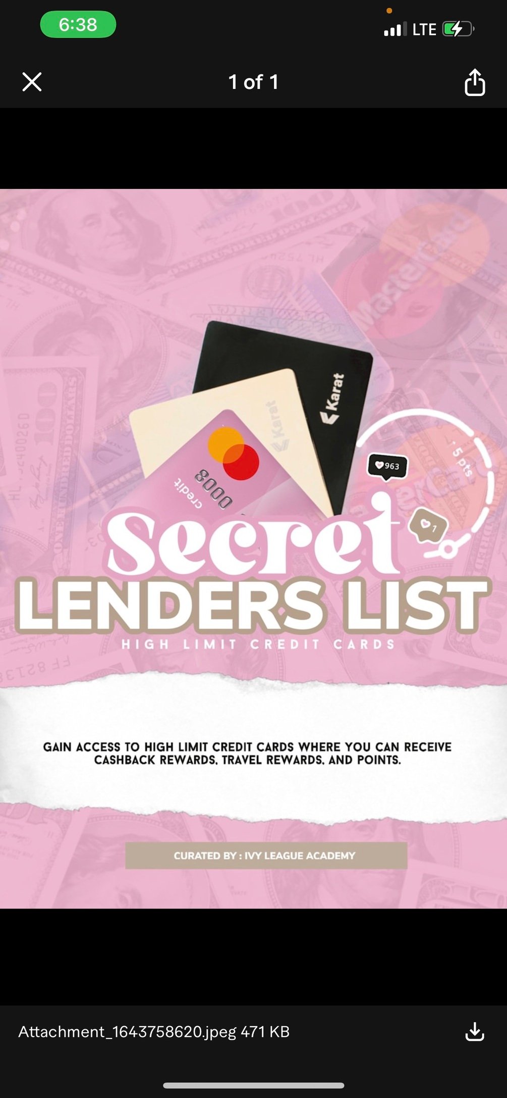 Our secret lenders list have a list of banks and/or credit and tells your exactly what lenders they pull from. Instead of paying someone to help you gain access to personal and business credit cards, do it yourself for FREE!